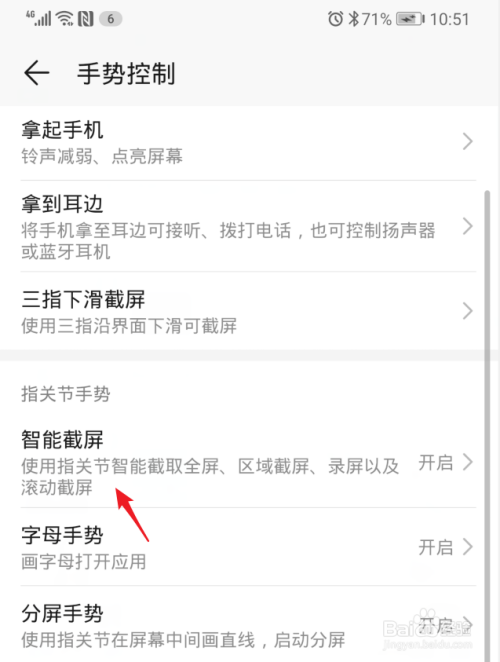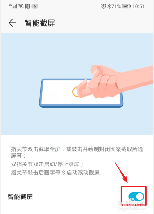 进入后,可以看到智能截屏的利用方式,点击智能截屏的开关将其打开。