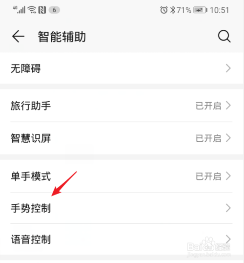 在智能辅助界面,选择“手势节制”的选项。
