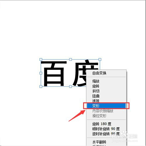 然后利用自由变换Ctrl+T,右击文字点击变形,如图所示。