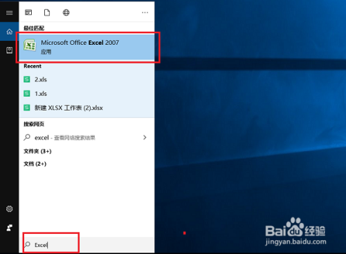 第三步在win10系统上搜刮excel2007应用,双击进行打开,如下图所示: