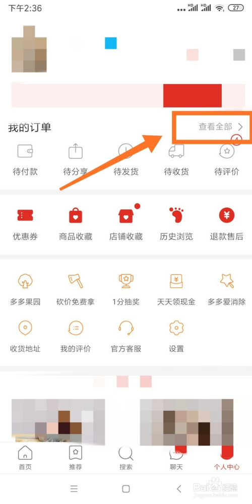 进入小我中间页面后,在【我的订单】那一栏找到【查看全数】。