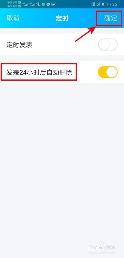 进入按时界面,把颁发24小时后主动删除按钮点开,然后点击确定。