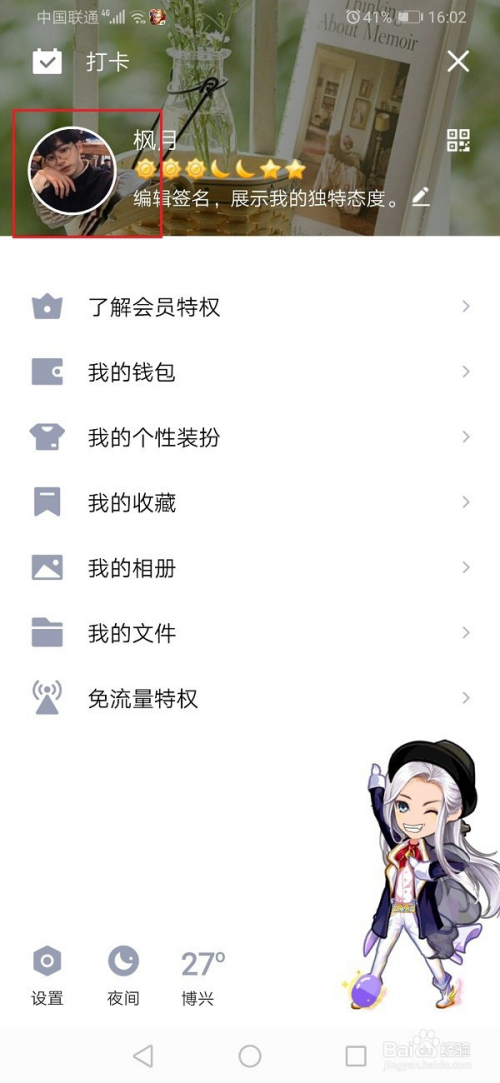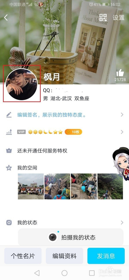 第三步进去qq小我本家儿页之后,点击小我账号头像,如下图所示: