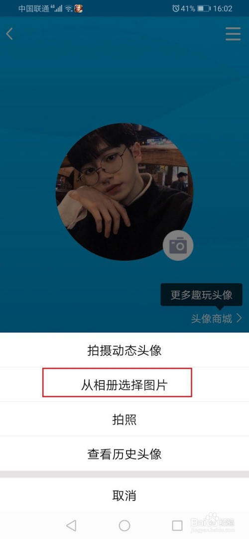 第四步进去之后,点击头像,选择从相册选择图片,如下图所示: