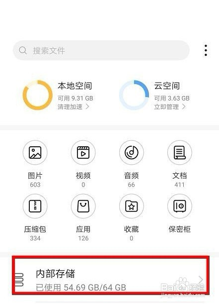 5点击后进入下图,点击红色框选的内部存储。