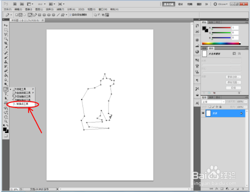 点击【钢笔东西】,按图示在作图区域绘制一个多边路径图案。点击【转换锚点东西】,将多边图案上的节点进行光滑圆化处置(如图所示);