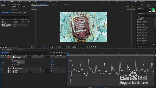 打开AE软件,定名文字随音乐跳动,调整响应的参数。