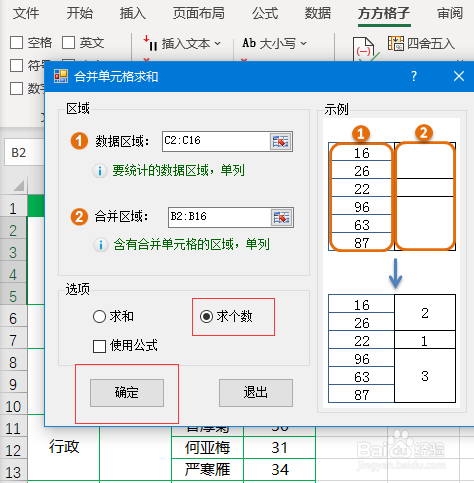勾选【求个数】,然后点击【确定】