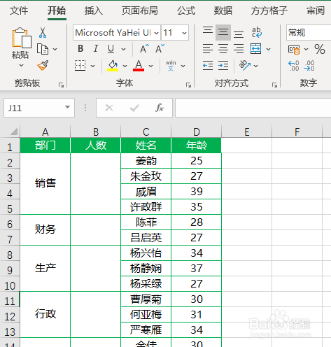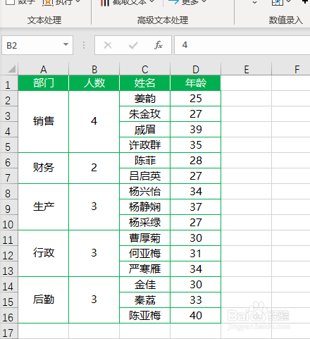 如下图,是某公司员工信息表,此刻我们想要统计出各部分员工人数即各归并单位格归并了几多个单位格。
