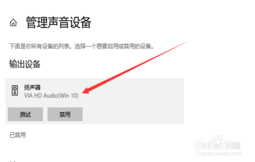 然后在办理设备选项中单击“扬声器”选项再单击“启用”按钮。