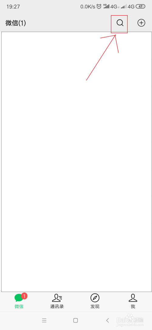 1、首先打开微信、并点击右上角“搜刮”的图标