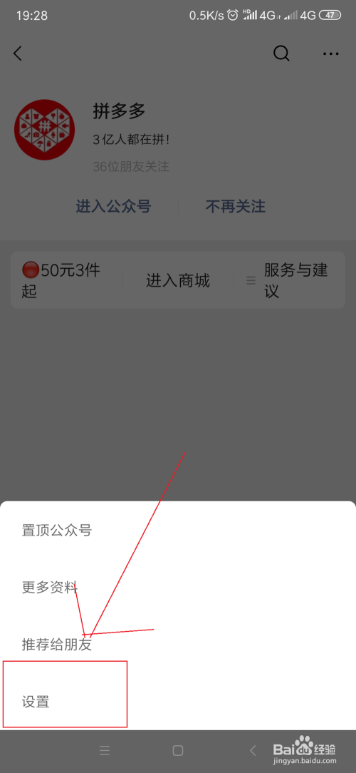 4、在详情界面中,继续点击右上角图标,并在弹出层中点击“设置”