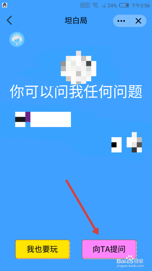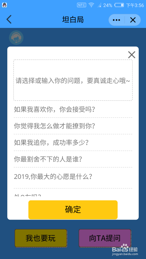 5、老友经由过程你分享的进口进入到率直局中,点击“标的目的TA提问”,选择或输入问题进行提问并点击“确定”即可。
