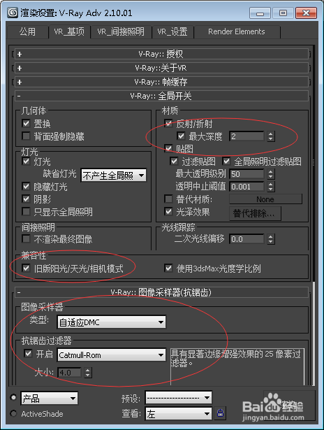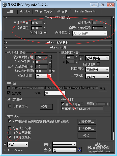 勾选最大深度,若是是3.0版本以上的衬着器,需要封闭概率灯光