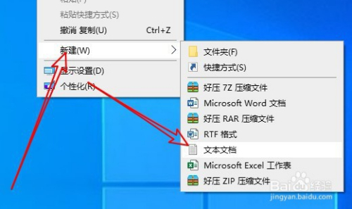 首先在Windows10系统桌面,右键点击空白位置,在弹出菜单中选择“新建/文本文档”的菜单项。