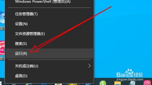 从头启动计较机后,我们右键点击屏幕左下角的起头按钮,在弹出菜单中选择“运行”的菜单项。