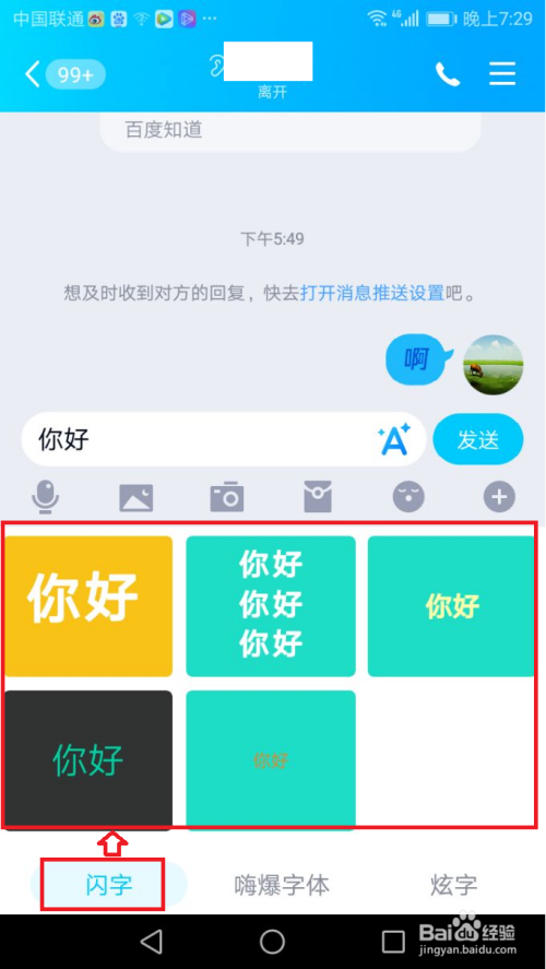 打开手机QQ——打开与老友的聊天窗口——先输入文字——这时输入框就显示一个“A”,点击它。