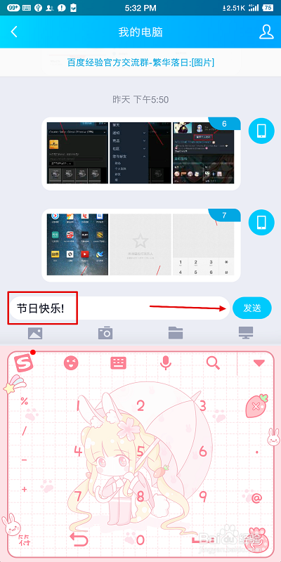 首先,我们先随便找一小我,在输入框内编纂完“祝福语”,并点击【发送】出去。