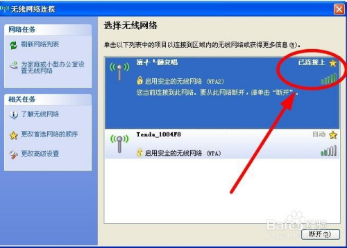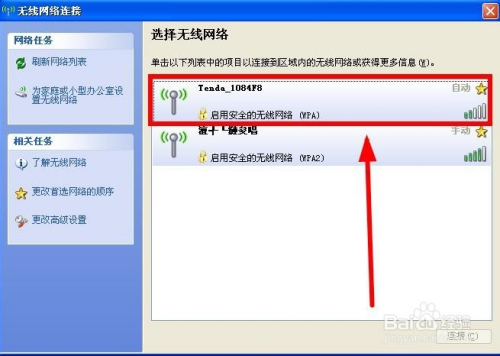 弹出电脑无线装配能接収到的所有无线收集信息,我们选择此中的知道密码的无线收集双击