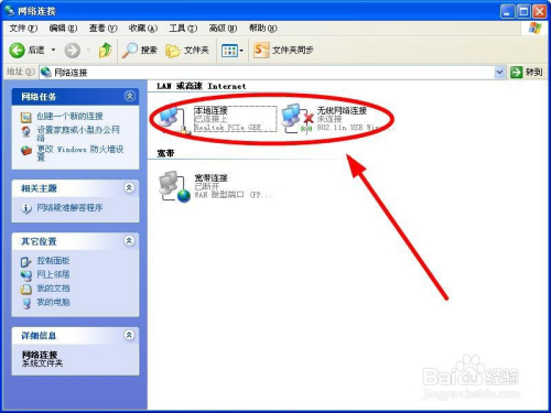 在弹开的窗口,呈现现有的收集环境,此刻利用的是有线网,右边的无线网是“未毗连状况”