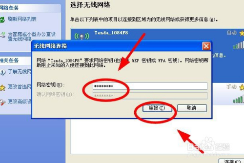 在弹出的无线收集毗连对话框,输入密码后,单击“毗连”