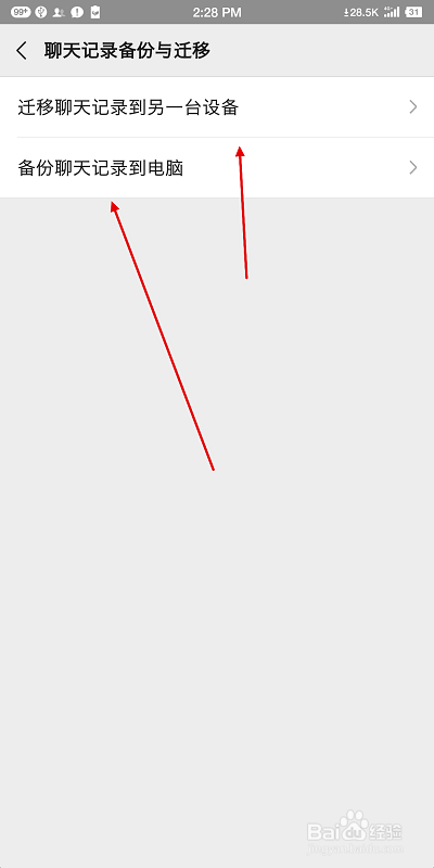 五、进入后,我们需要选择是“迁徙聊天记实至另一台移动设备”仍是“备份聊天记实到电脑”。