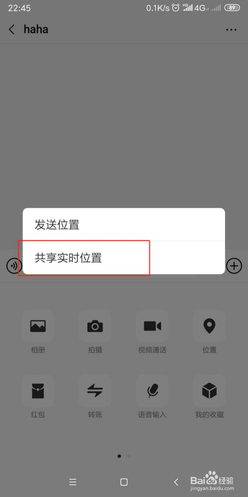 选择第二个选项----共享及时位置,老友点击你的共享及时位置后,即可看到老友的当前位置