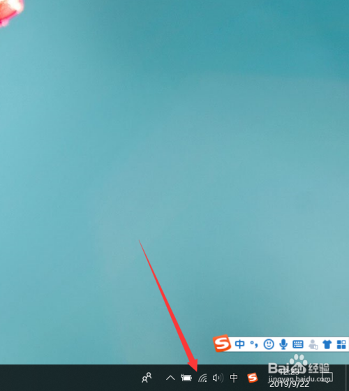 电脑开机后,点击右下角使命栏通知区域的收集图标,如图。