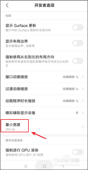 开启当作功之后,往下滑动页面,在画图下方,点击【最小宽度】就可以设置dpi值。