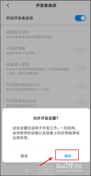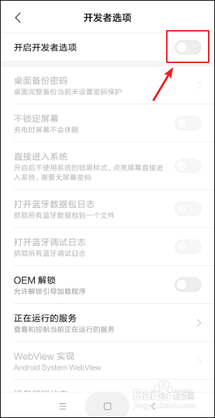 注重:若是你的手机没有开辟者选项,可以参考以下经验,打开“开辟者模式”。
