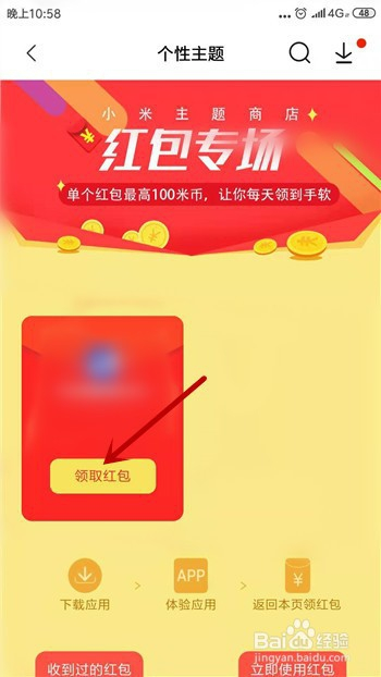 体验完当作后,返回,点击【领取红包】。
