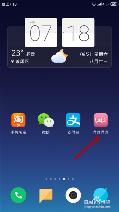 第一步,在手机桌面上,打开“哔哩哔哩”。