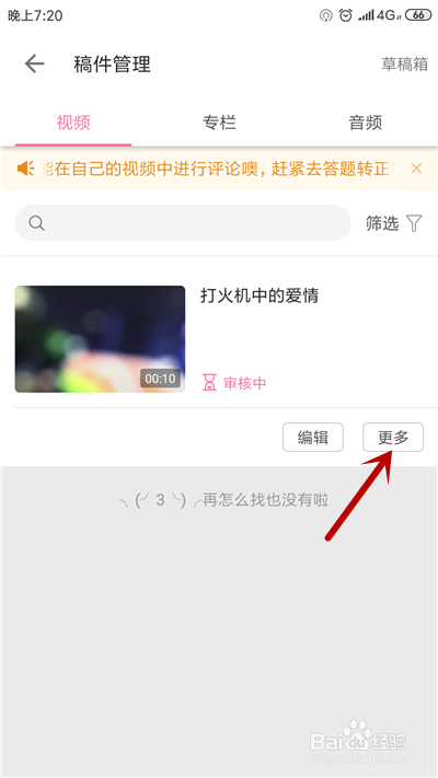 第五步,在删除的投稿中,点击“更多”选项。