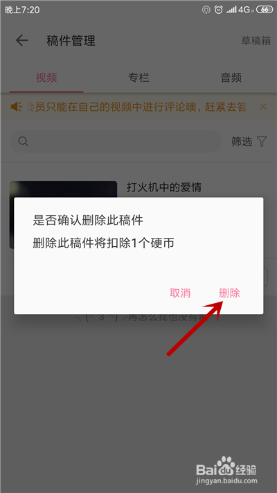 第七步,在提醒界面,继续点击“删除”。