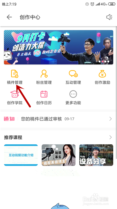第四步,在创作者中间,点击“办理稿件”。