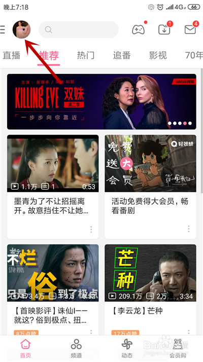 第二步,在首页里,点击左上角“头像”。