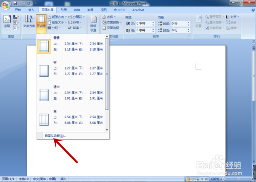 第三步,选择“自界说边距”选项。