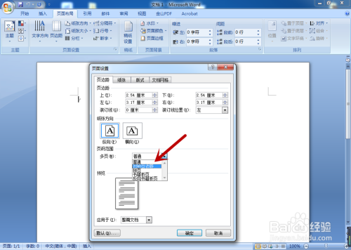 第四步,在页码规模的“多页”下,点击下拉箭头,如图所示。