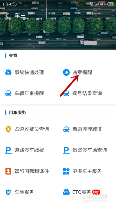 第五步,在车本家儿界面,点击“违章提醒”选项。