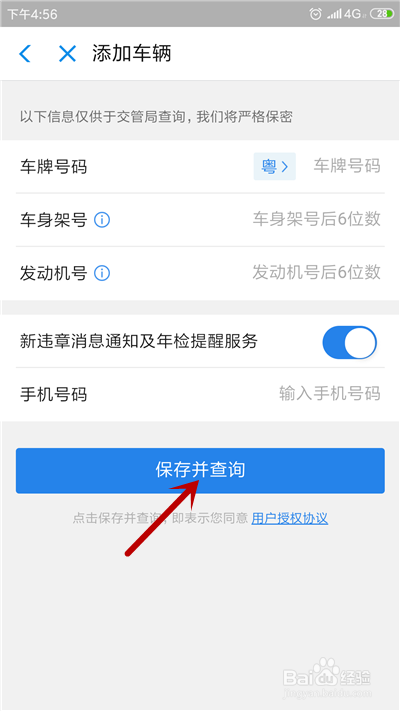 第八步,填写车辆信息,点击“保留并查询”,然后缴纳罚条目即可。