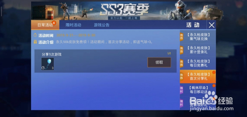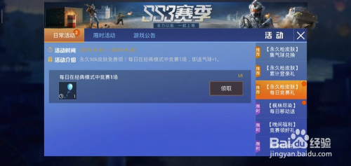 我们点击活动——日常活动——永远枪皮肤,累积登录领,我们登录就能领取;