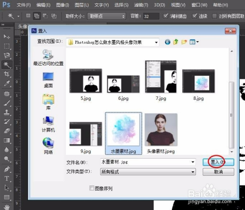 第五步:选择菜单栏“文件--置入”,将提前筹办好的水墨风图片添加进来。