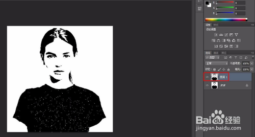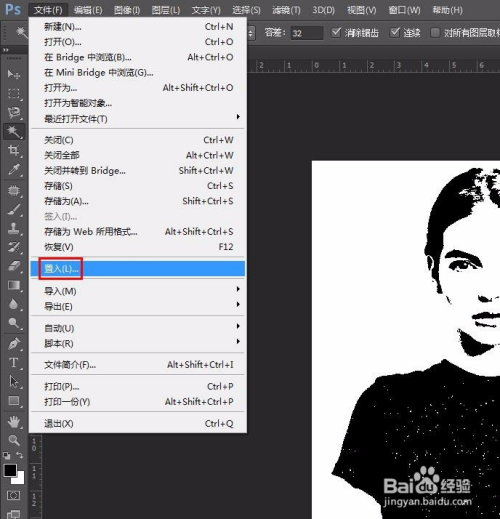 第二步:选择菜单栏中的“图像--调整--阈值”,将阈值色阶调整为口角分明的状况即可。