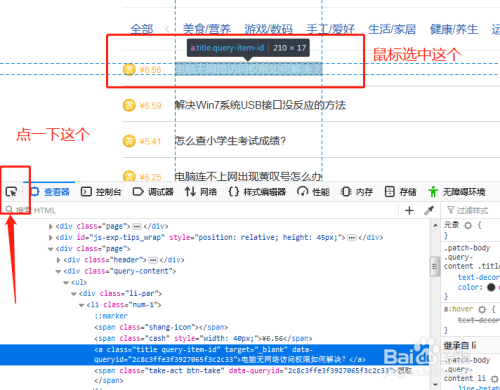 点,拔取页面元素按钮,然后拉到你看中的那个赏格问题上