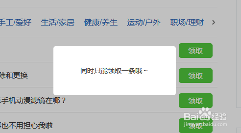 若是按正常的操作来领的话,百度赏格只能领取一个,如图:若是我过一个之后,会提醒“同时只能领一个”