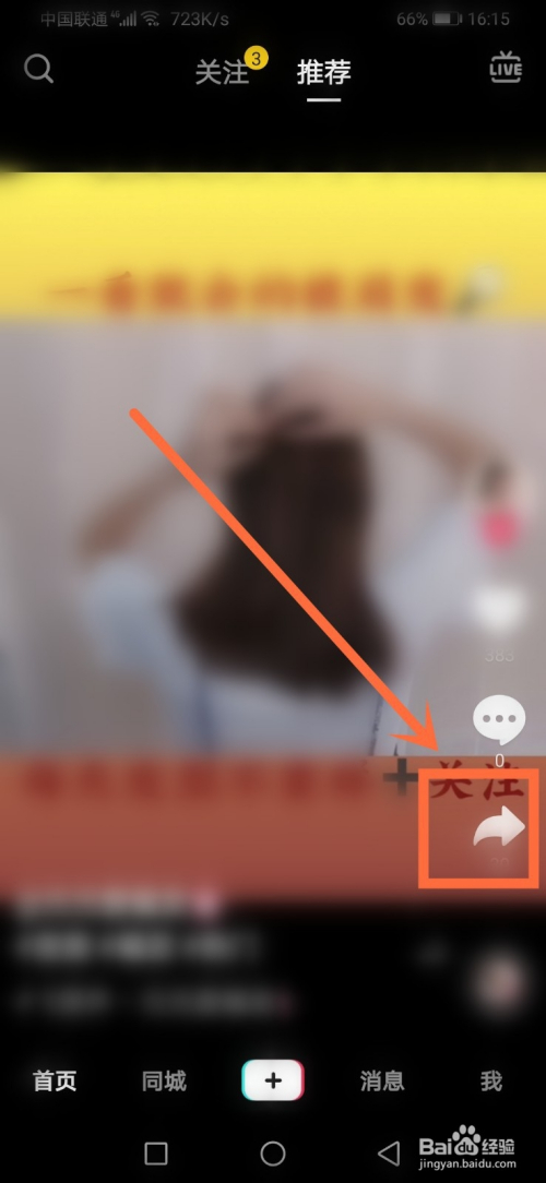 进入抖音页面后,选摘要去除水印的作品,并点击下右侧的分享图标。如下图所示