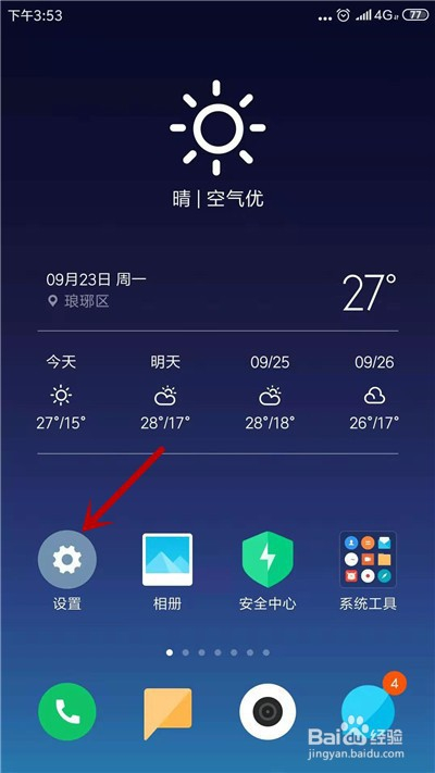 首先,在手机桌面,打开【设置】功能。