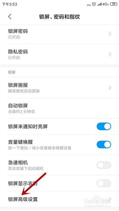 接下来,点击【锁屏高级设置】选项。