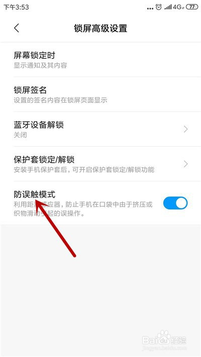 找到【防误触模式】,若是没开启,打开它。