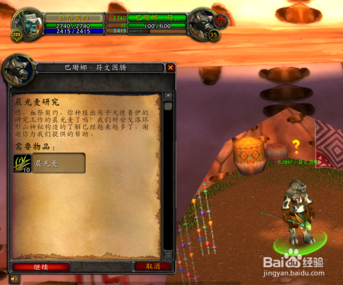 【接后续】在雷霆崖长者高地"巴珊娜·符文图腾"处(坐标70,33)接后续使命。